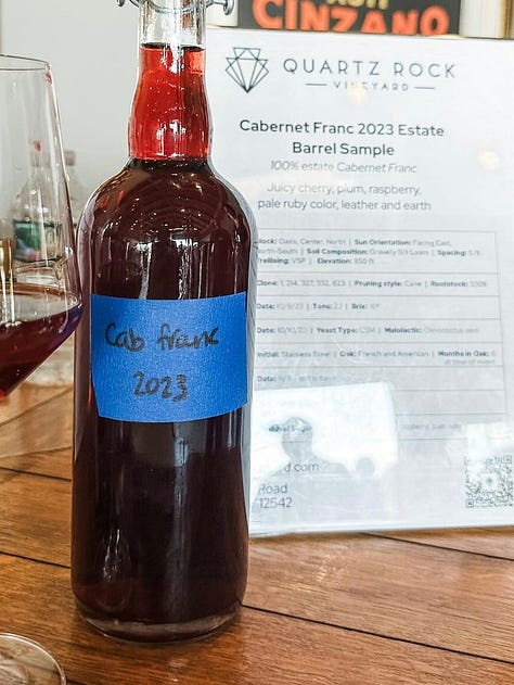 Quartz Rock Vineyard: 2023 Cabernet Franc Estate, 2022 Cabernet Franc Estate