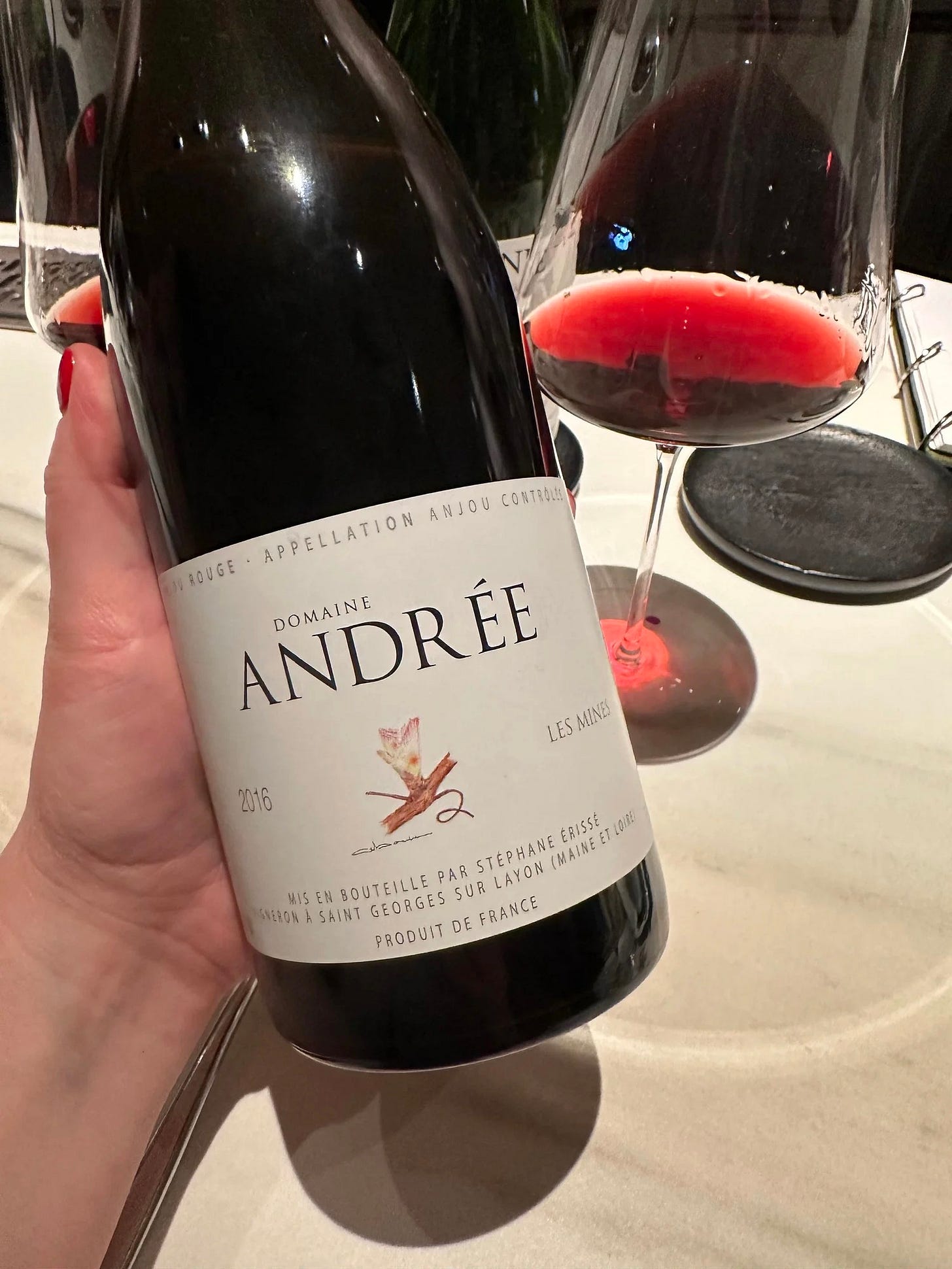 Domaine Andrée (Stéphane Érissé), 2016 “Les Mines” Anjou Rouge: A relative newcomer in Anjou, Ellis recommended the Les Mines for its stylistic similarities to the Patrick Corbineau but from Anjou Noir soils. Located in the commune of Saint-Georges-sur-Layon, Stéphane is working with 3 hectares of vines. Here, we are literally at the intersection of where the limestone soils of the Paris Basin end and the metamorphic schists and sandstones of the Massif Armoricain begin. The name “Les Mines” (translating to English “the mines”) is a nod to the dark grey schist soils. Having worked under Antoine Foucault of Domaine du Collier for three years starting his own project, the influence from Stéphane’s mentor and friend is evident. This wine, while young, was a really exciting one to taste. Compelling, a bit mysterious, it has a weight and structure very similar to the Corbineau. but with a different energy - like song composed in a minor key as opposed to a major one (if that makes sense to folks!). I managed to track down a bottle of Stéphane’s “Carbone” cuvée, so hopefully there will be a video to come featuring this wine so I can share a bit more on this domaine.