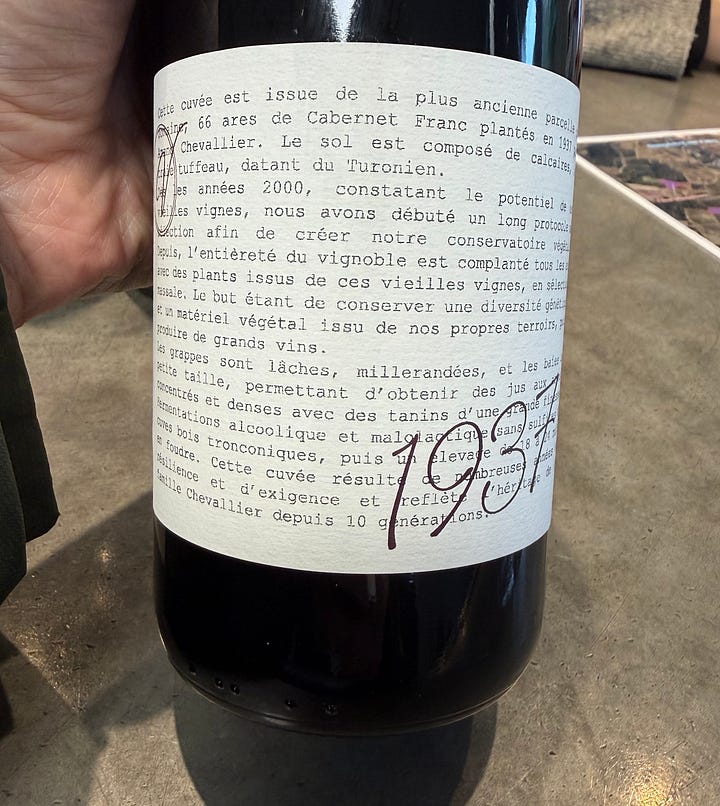 Cuvée 1937/Vieilles Vignes: With a wealth of older vines, it is not uncommon for producers in the Loire to make a “Vieilles Vignes” Cabernet Franc. Unlike many Vieilles Vignes expressions I’ve tried that tend to be a small step up in quality from an estate’s “cuvée tradition” or “cuvée domaine,” like the entire range of Cabernet Francs from Château de Villeneuve, their Vieilles Vignes punches way above its weight class, delivering at level on par or better than many “single vineyard” wines from other estates.