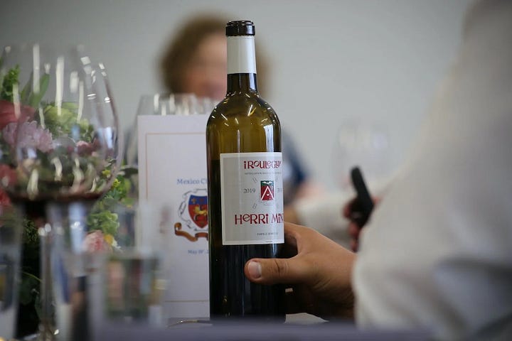Herri Mina, Irouléguy Rouge 2019 (100% Cabernet Franc): This was another wine that I brought from my cellar, and it was presented blind as a little surprise for the guests. My intention behind presenting this wine was twofold: I wanted to talk about Cabernet Franc’s Basque Country origins, and then, of course, the wine’s Bordeaux connection! Herri Mina was established by legendary winemaker Jean-Claude Berrouet, who was winemaker at Château Pétrus in Pomerol for 44 vintages. A Basque native, Jean-Claude set up Herri Mina as his retirement project so to speak. And he chose to work with Cabernet Franc because, like him, the grape hails from Basque Country (specifically Spain’s País Vasco, around the city of Hondarribia), and working with this grape in Irouléguy was like getting back to his roots. Jean-Claude has less than a hectare of Cabernet Franc vines planted on steep, terraced parcels in the foothills of the Massif d’Arradoy in Irouléguy. To my knowledge, this is the only 100% Cabernet Franc produced in Irouléguy, where the variety is normally a blending partner with Tannat. As I noted, this wine was poured blind, and guests were asked to choose whether it was New World or Old World and then identify the country of origin. While a few people thought that it was French, but not Bordeaux, the wine’s warmer climate energy and contemporary style led many to believe that it was something from the New World. And if you have not had this wine, it does have a certain degree of refinement and polish too it. It is a meticulous and thoughtful wine, with an aura so singular it is hard to place. Though one thing is for certain, this is Cabernet Franc through and through. Lifted, ethereal perfume of sage and balsam, forest berries and cardamom. It was seamless, poised, silky tannins and juicy acidity. No hard edges here, just pure pleasure.