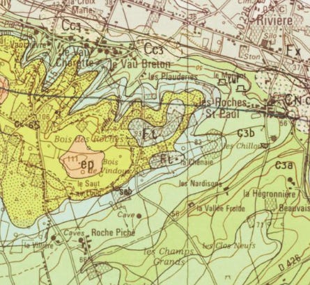 And part of Jérôme’s efforts since joining the domaine was to do some soil studies to better understand his vineyards, which are divided into nearly 50 individual parcels. Across an area that is only about a kilometre long and 500m wide, 18 different soil types have been identified in his parcels - everything from Middle Turonian white tuffeau, Upper Turonian yellow tuffeau, millarges, heavy Senonian-age clays with flint, just to name a few.
