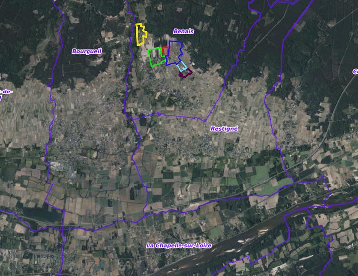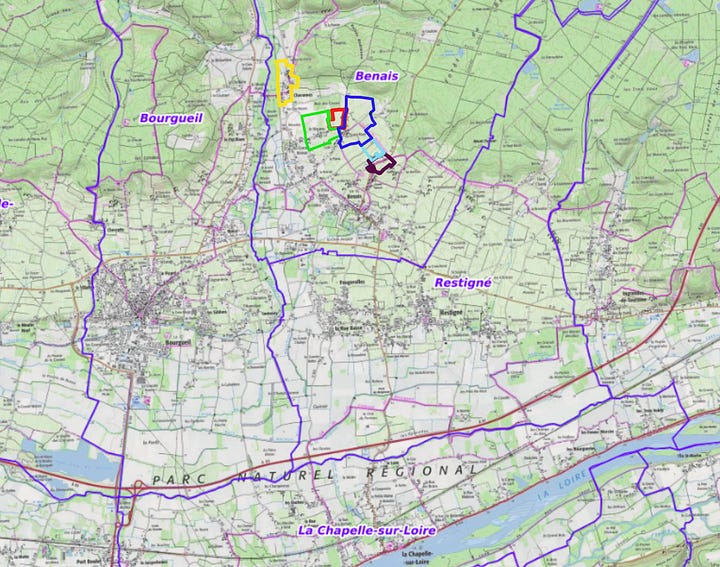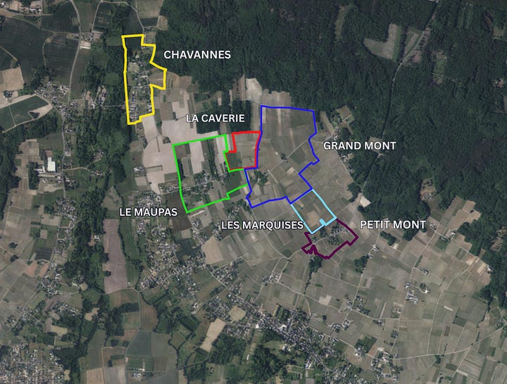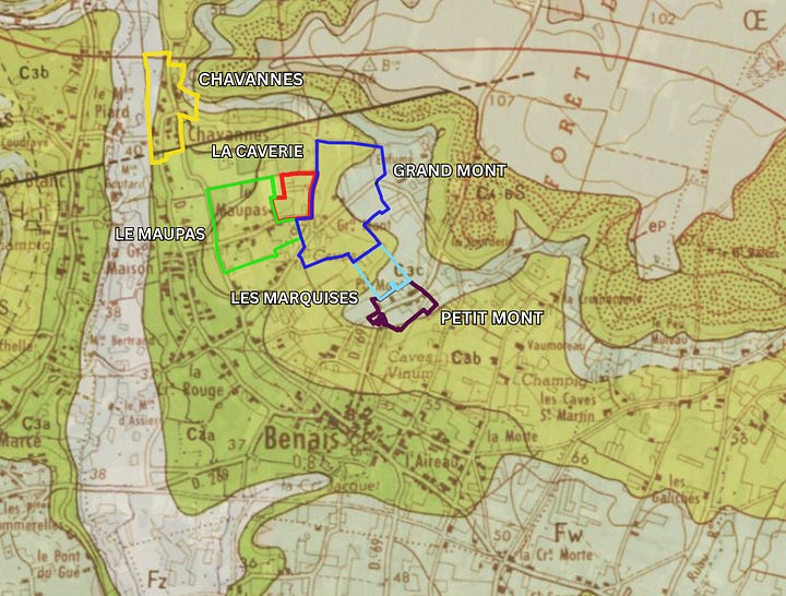 Stéphane is working with around 9 hectares of vines from parcels from across the commune of Benais exclusively. The main lieux-dits he is farming include, from northwest to southeast, Chavannes, le Maupas, la Caverie, Grand Mont, les Marquises, and Petit Mont.