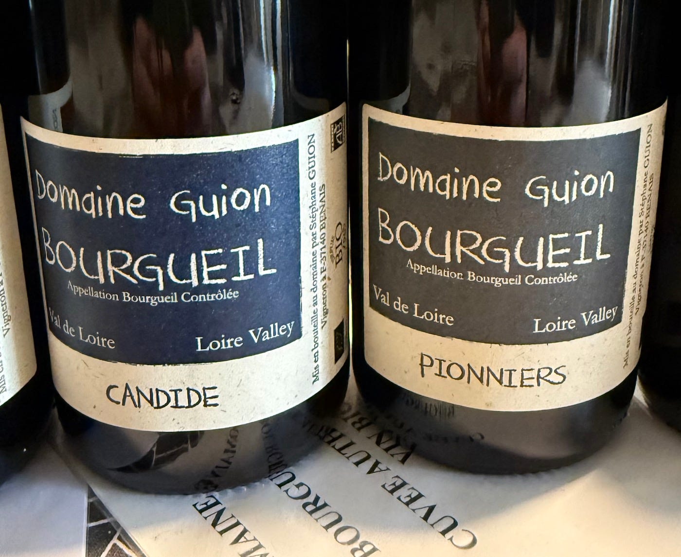 “Candide” 2022 Bourgueil (13% abv., SRP 11.50EUR/$18USD): Leads with ripe, dark berries and bramble on the nose with an underlying note of fragrant bouquet garni, cedar and wet stones. A pure and generous palate, with focused acidity complemented by fine, firm, chalky tannins. Structured but approachable, with a round, enveloping, moreish finish. Shows beautiful restraint and vibrancy from the very warm 2022 vintage. Delicious now, and will absolutely improve over medium to long term.