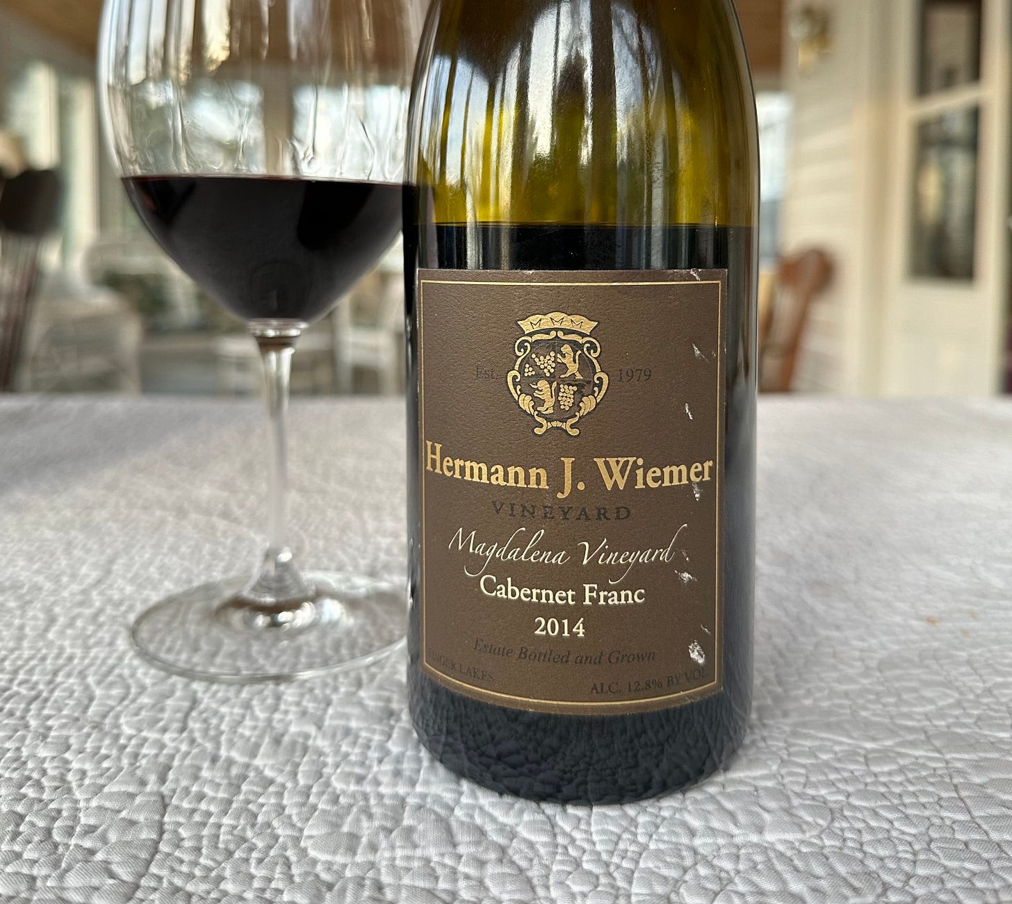 Lately I’ve been revisiting my notes on Hermann J. Wiemer’s Magdalena Vineyard Cabernet Franc in preparation for a presentation I’ll be giving in Chinon later this month, and remembering that I had a bottle of the 2014 in my cellar, I thought it would be a perfect opportunity to check in on this nearly 10-year-old Finger Lakes Cabernet Franc.