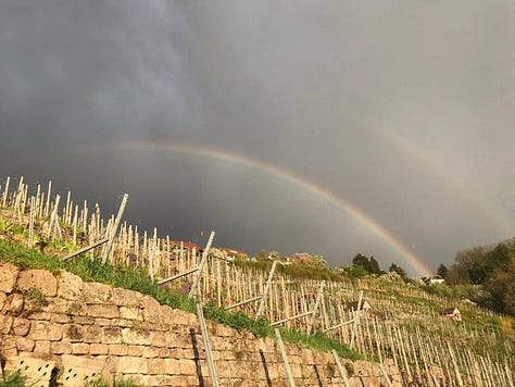 The Kreis family’s parcel of Cabernet Franc is located in the the southern part of Württemberg in the sub-region of Remstal & Stuttgart. The vines are planted at an elevation of around 360 to 390m above sea level, on a very steep - around a 35° - slope with a south-southwest orientation, giving the vines the benefit of the warmer and stronger afternoon sunshine. The vineyard is also terraced, reinforced by sandstone walls, and the stone walls absorb the heat during the daytime and radiate that heat back to the vines at night giving them added warmth to aid ripening. Finally the soils are on the warmer side, and are comprised of a shallow red marl topsoil of about 30 to 50cm with a clayey texture, which is beneficial for water retention, and this is followed by a red sandstone bedrock. While I haven’t visited the parcel, all things considered, this would appear to be warmer and sunnier site, which could be a good one for Cabernet Franc.