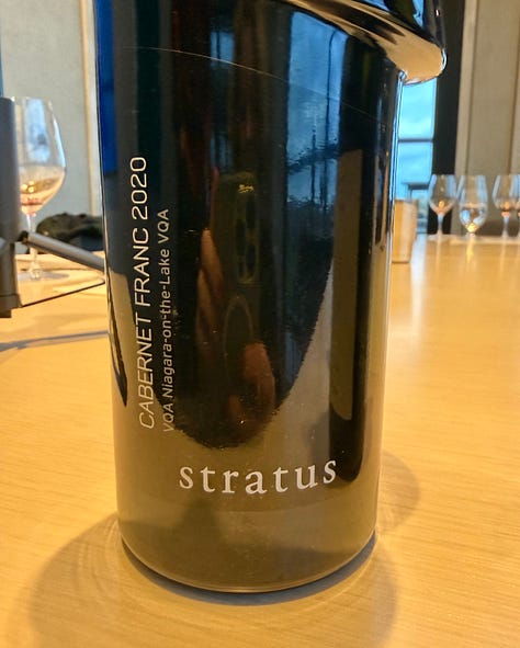 2022 Cabernet Franc “Escarpment,” VQA Niagara Escarpment (14.1% abv., Licensee only): While only available to licensees (ie. restaurants, bottle shops), this was a fascinating wine to taste in this line-up and I’m so pleased Dean included it in the tasting. Sourced from the Wismer Vineyard on the Niagara Escarpment, this wine was essentially made the exact same way as the classic Stratus “Black Label” allowing the “terroir” to be on full display - and the two 2022s couldn’t be more different. The “Escarpment” Cabernet Franc leads with bright, ripe red fruit, soft sage, dusty herbs, and floral notes of rose and peony. Succulent fruit envelops fine, linen-like tannins, and it displays the hallmark concentration and depth of all the Stratus Cabernet Francs, but with a bit more of that verticality, focus and tension that I often find in “Bench” Cabernet Francs. Not only did this stand out in the line-up as almost being a bit Loire-esque but with more weight and ripeness, but it also helped emphasize the strength of Status’s own vineyard “signature” for Cabernet Franc and the strong through-line across the rest of the wines in the tasting regardless of the vintage or approach to winemaking.