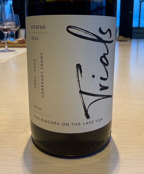 2024 “Trials” Cabernet Franc Zero-Zero, VQA Niagara-on-the-Lake (14.5% abv., $55CAD): The exceptional 2020 vintage also marked the debut of Stratus’s “Trials” range of wines, which are small batch experiments following the “zero-zero” philosophy of no additions, no added sulphites, and no filtration. The 2024 “Trials” Cabernet Franc was aged briefly (90 days) in neutral French oak. Perfumed and a touch exotic on the nose and palate, with a mélange of ripe, red and dark fruits like confit red cherries and black raspberry coulis, layered herbals and florals of sage, jasmine and lavender, mixing with notes of fennel seed, star anise, and pink peppercorn. Round, a touch creamy, and richly textured, while also having an unmistakeable low-fi energy and verve. Vibrant, avant garde and impeccably crafted, this wine feels akin to the “classic” Stratus Cabernet Franc, while being more youthful, unadorned, and, for lack of a better word, “hip.” A Stratus Cabernet Franc for a new generation of wine drinker.