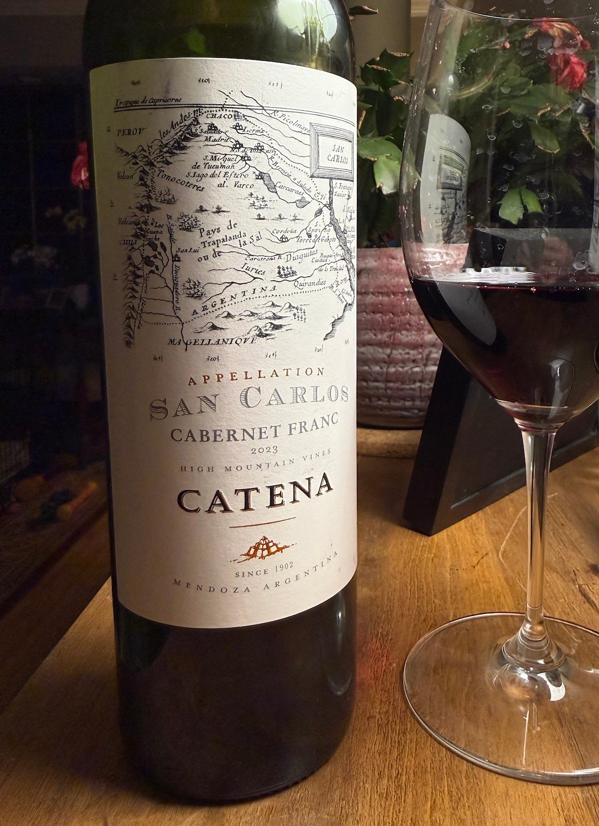Catena Zapata, 2023 San Carlos Appellation Cabernet Franc (13.5% abv., SRP $22USD): The Uco Valley is emerging as the epicentre for growth in Cabernet Franc plantings in Argentina. The region of San Carlos is the southernmost sub-region in the Uco Valley and benefits from being one of the coolest in Mendoza, as well as boasting a bevy of “crus” including Paraje Altamira and Pampa El Cepillo. This wine is from a selection of parcels from across San Carlos at an average elevation of 1090m above sea level, and sees a rather classic approach to red wine vinification with 12 months in French oak barrels (30-40% new). Expressive, fragrant and spicy, the nose and palate show balanced aromatics with all the components (fruit, earth, spice, wood) working in tandem. Ripe, fleshy red fruits, notes of Mediterranean herbs and eucalyptus, rose, and spicy undertones of black pepper, crushed red chilli flakes and cinnamon. The palate shows the markers of the vintage, with elevated, mouthwatering acidity and fine, firm chalky tannins that combine with the fruit to create a wine that has flesh and concentration without being bulky, while also being well-structured with drinkability, pliability and ease. This really feels like a real “food” wine to me, so I would consider pairing this with a classic peppercorn-rubbed grilled steak or a black pepper beef stir fry with peppers and cabbage.
