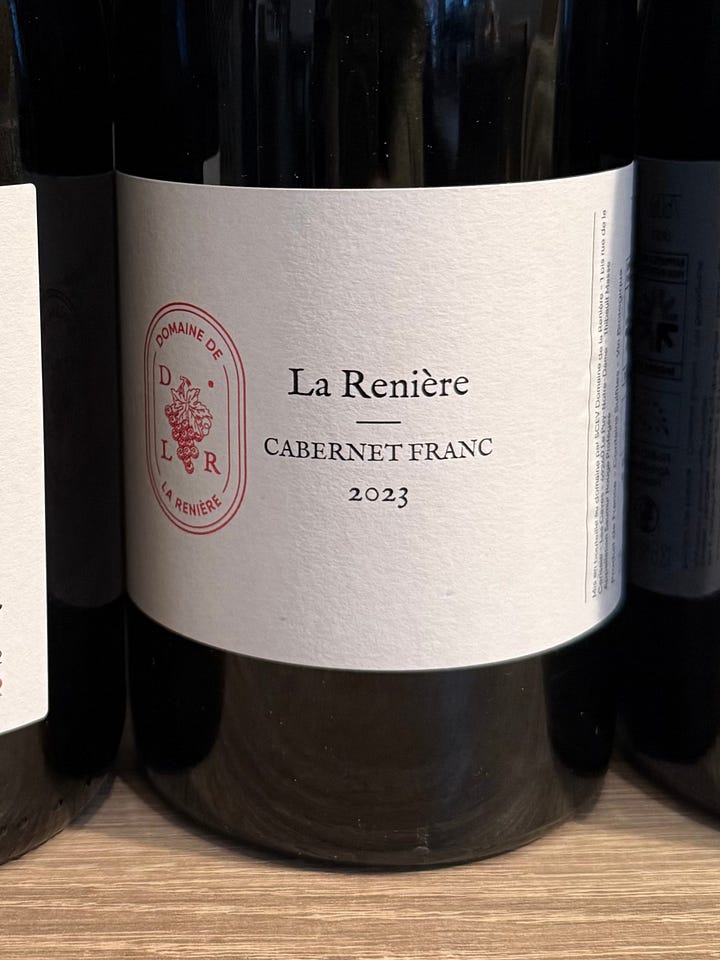 Domaine de la Renière, 2023 Saumur Rouge “La Renière” (13.5% abv., SRP 18€/$28USD): I had the pleasure of visiting vigneron Thibault Masse of Domaine de la Renière on this trip, and I was extremely impressed by his range of Cabernet Francs. The wines all had terrific energy, clarity and purity of fruit, and just the right balance of subtlety and structural presence. His 2023 “La Renière” was one of two Saumur Rouge featured during the masterclass, and it really spoke to me for the typicity and character I’ve come to love from great, early-drinking expressions of Saumur Rouge. Bright, floral, with lifted red fruits complemented by notes of mint, thyme, pink peppercorn and rose. Juicy, crunchy, with a distinctive “coolness” about it that gives this wine beautiful verve and energy. Light on its feet, but with impressive density through the mid-palate, this is the sort of wine I would drink with a slight chill on an mild, spring day.