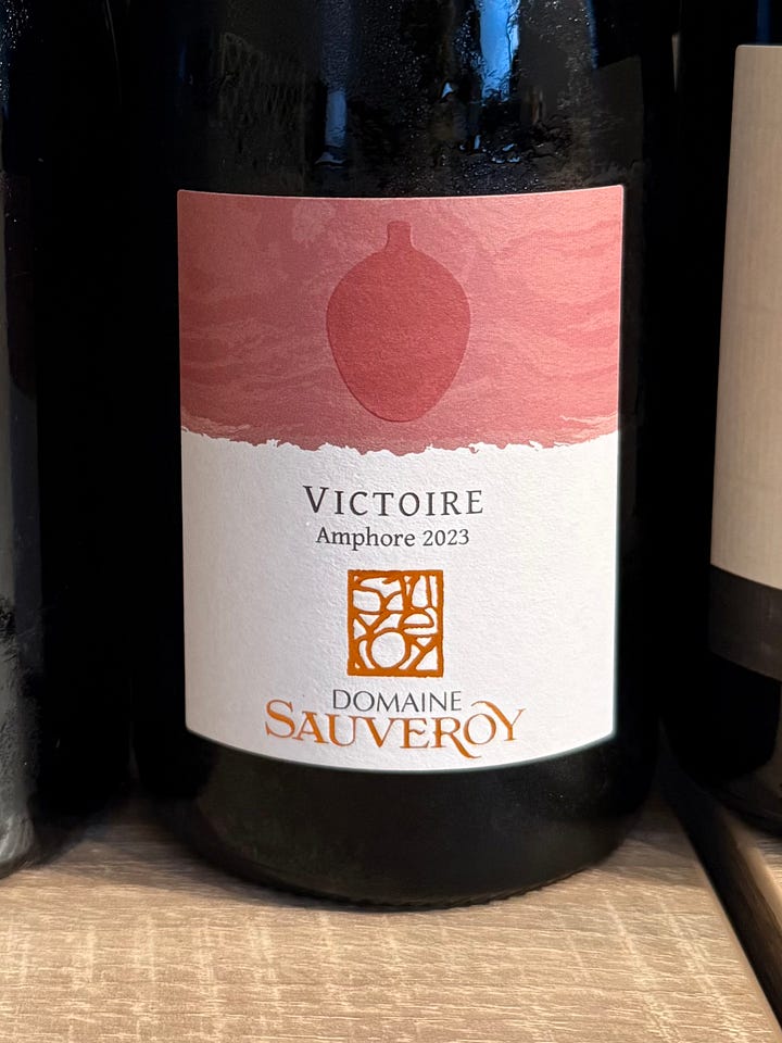 Domaine Sauveroy, 2023 Anjou Villages “Victoire” (13.5% abv., SRP 15-20€): This was my first introduction to the wines of vigneron Quentin Cailleau and I am very keen to try more. From parcels in St-Lambert-du-Lattay on the left bank of the Layon River, his 2023 Anjou Villages was a textbook expression of Anjou Rouge from the schistous soils of the region - a style I’ve grown quite fond of over the years. Cabernet Franc on schist just hits a little different, and I love wines like this for how they are such a contrast from the other appellations. Fermented in stainless steel and aged in amphora, the wine showcased brambly, dark and red fruits, with a distinctive, lush herbal profile mixing with notes of graphite and exotic spices. Seductively styled, with cleansing acidity and grippy yet plush tannins, the wine had moody, melodic energy about it, with impressive purity, power and finesse. This is a wine that warrants a deeper dive in the months ahead!
