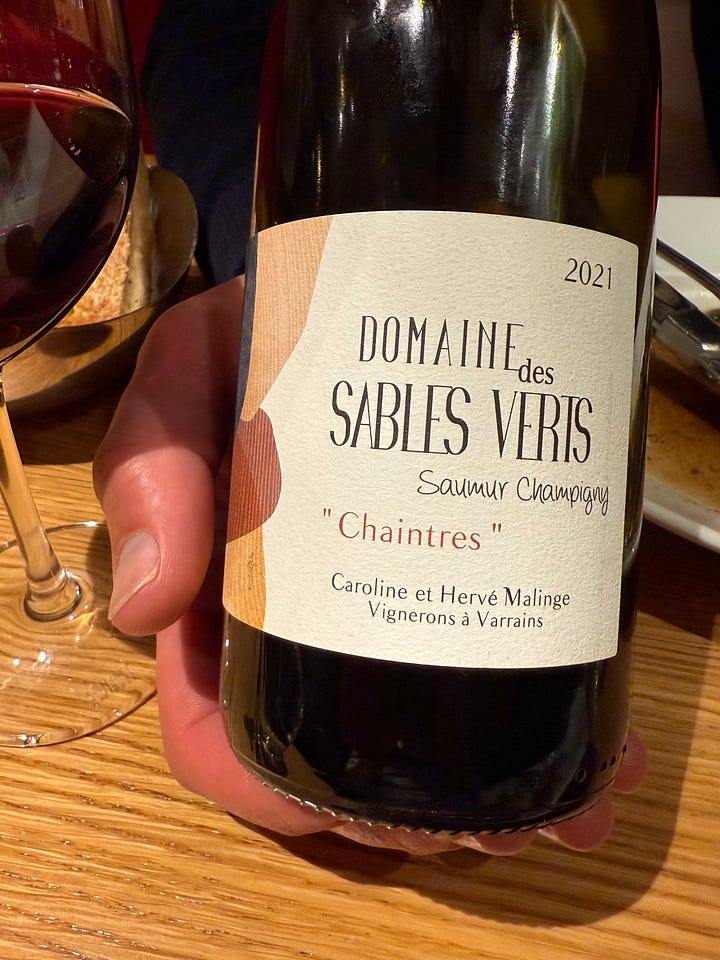 This is a simple PSA to tell you, do NOT sleep on the 2021 vintage for Loire Valley Cabernet Franc. This vintage received some less-than-favourable press when the wines were first released that I personally feel was rather unfair to the wines and the hardworking vignerons and vigneronnes that tended to the vines during this cooler more “ligerien” vintage. As I have stressed in a number of posts, known the vigneron and know the parcel, and the vintage becomes secondary. And I really believe some of the vintage’s best wines will have lots to offer to those who are willing to be patient and give them time to express themselves. When dining out in the Loire during recent trips, I reach for the 2021s first for their freshness, elegant tannins and drinkability. During this recent visit, I enjoyed the 2021 Saumur-Champigny “Chaintres” from Domaines des Sables Verts (13% abv., SRP 20-22€/$30USD) and the 2021 Saumur-Champigny “Le Grand Clos” from Château de Villeneuve (12% abv., SRP 28€/$45USD) on two different occasions dining out in Saumur. Both wines paired seamlessly with the springtime fare that graced our plates, and delivered ease, pleasure and finesse with every sip.